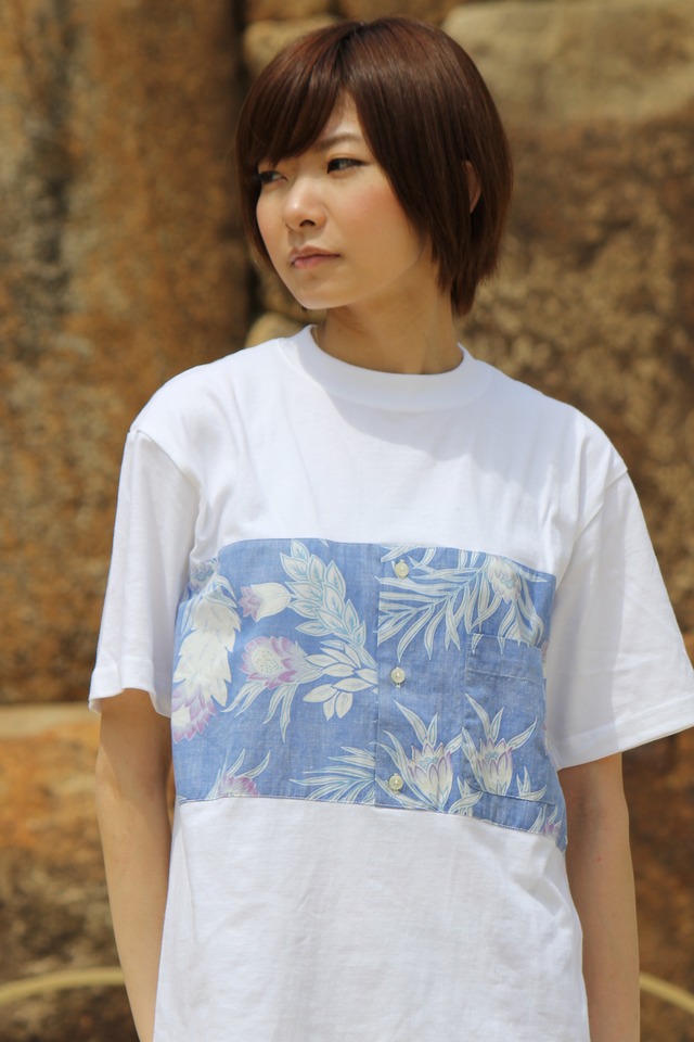 B-TYPE:Tシャツの中央部分をアロハに切り替えたタイプです。(ポケット付き) アロTとは、アロハシャツ+Tシャツの新しいカジュアルウェアです。 ベースとなるTシャツはUnited Athle(ユナイテッドアスレ)の6.2ozヘビーウェイトを使用しております。 ベースカラー:ホワイト